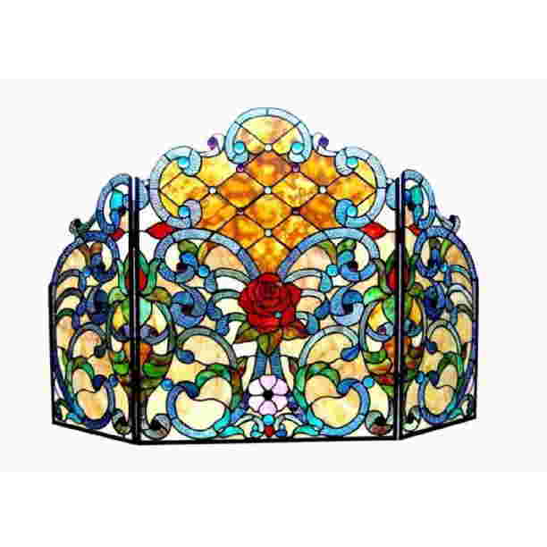CHLOE Lighting 3 Pieces Folding Tiffany-glass Victorian Fireplace Screen 44″ Wide