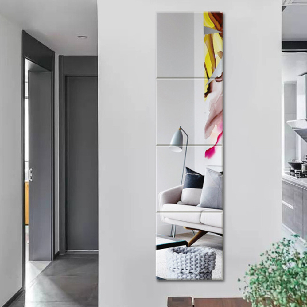 Large Square Glass Mirror Tiles Self Adhesive Wall Mounted Bathroom Mirrors DIY eBay
