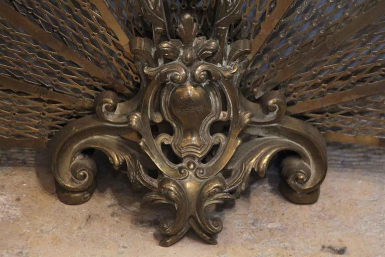 1930s Antique Brass Fan Fireplace Screen with Figural and Decorative Details For Sale at 1stdibs
