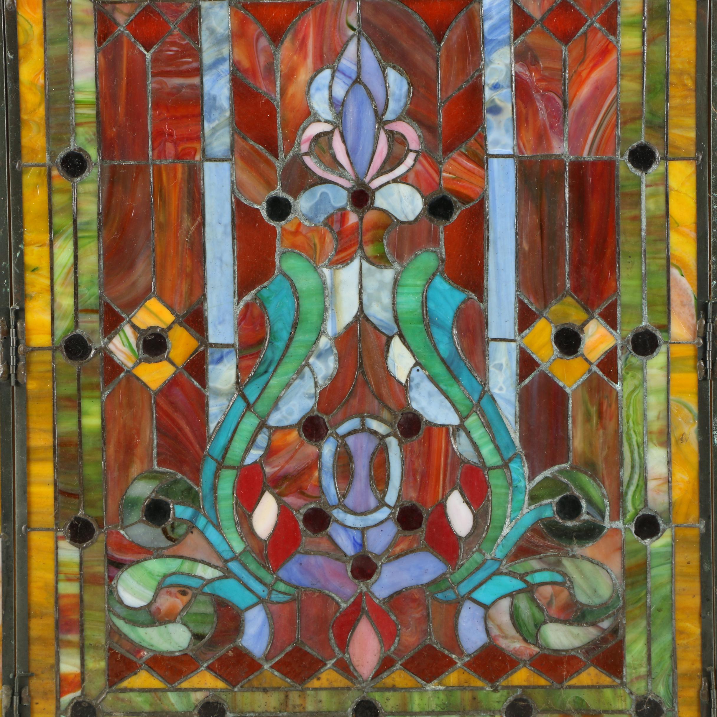 Antique Arts and Crafts Fireplace Screen Leaded Stained Glass Circa Early 1900’s