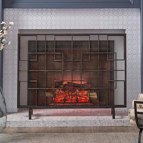 Amazon.com: Large Bronze Single Panel Fireplace Screen, Modern Heavy Duty Spark Guard for Baby