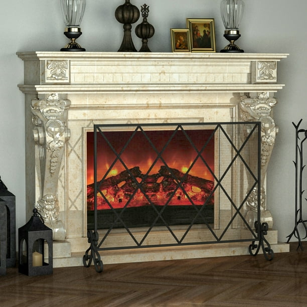 Iron Fireplace Screen 73 x 122cm Stylish Decorative Black – Alimart