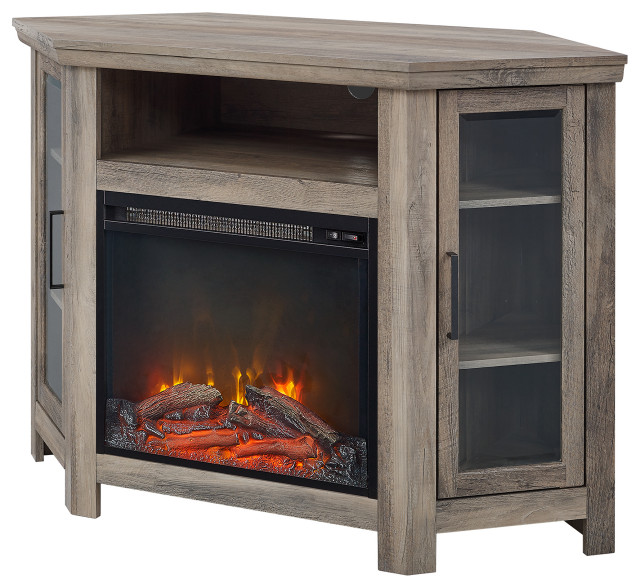 48" Wood Corner Fireplace Media TV Stand Console – Transitional – Entertainment Centers And Tv