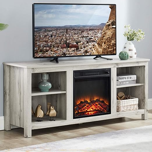 Amazon.com: GOOD & GRACIOUS Wooden TV Stand and Electric Fireplace, Fit up to 65" Flat Screen TV