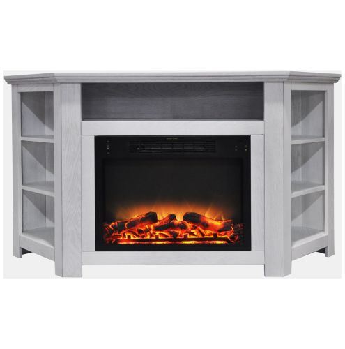 56 In. Electric Corner Fireplace in White with Fireplace Display eBay