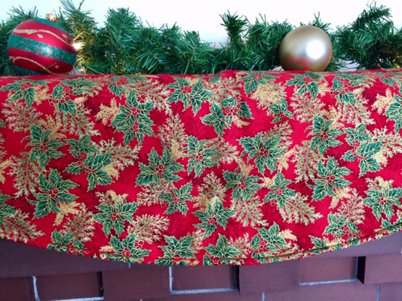 Red Christmas Mantel Scarf Christmas Holly Mantle Scarf Etsy