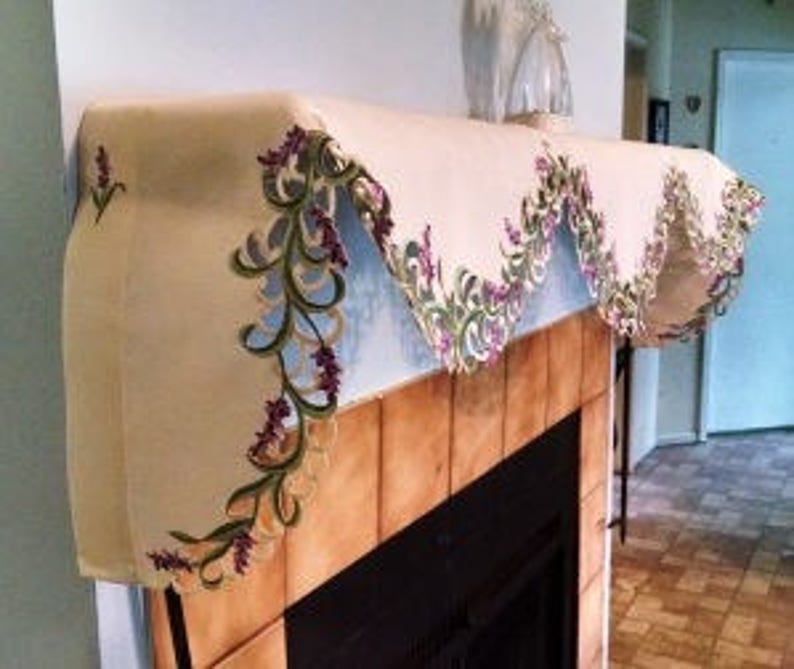 Fireplace Mantel Scarf with Lavender and Lilac Flowers on Etsy
