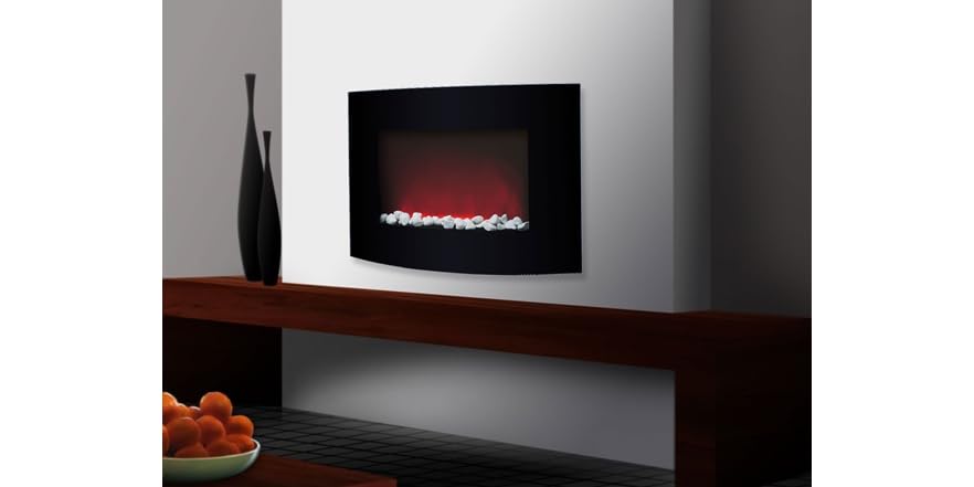 LED Flame Effect Wall Mounted Electric Fire Fireplace Black Curved Glass Heater