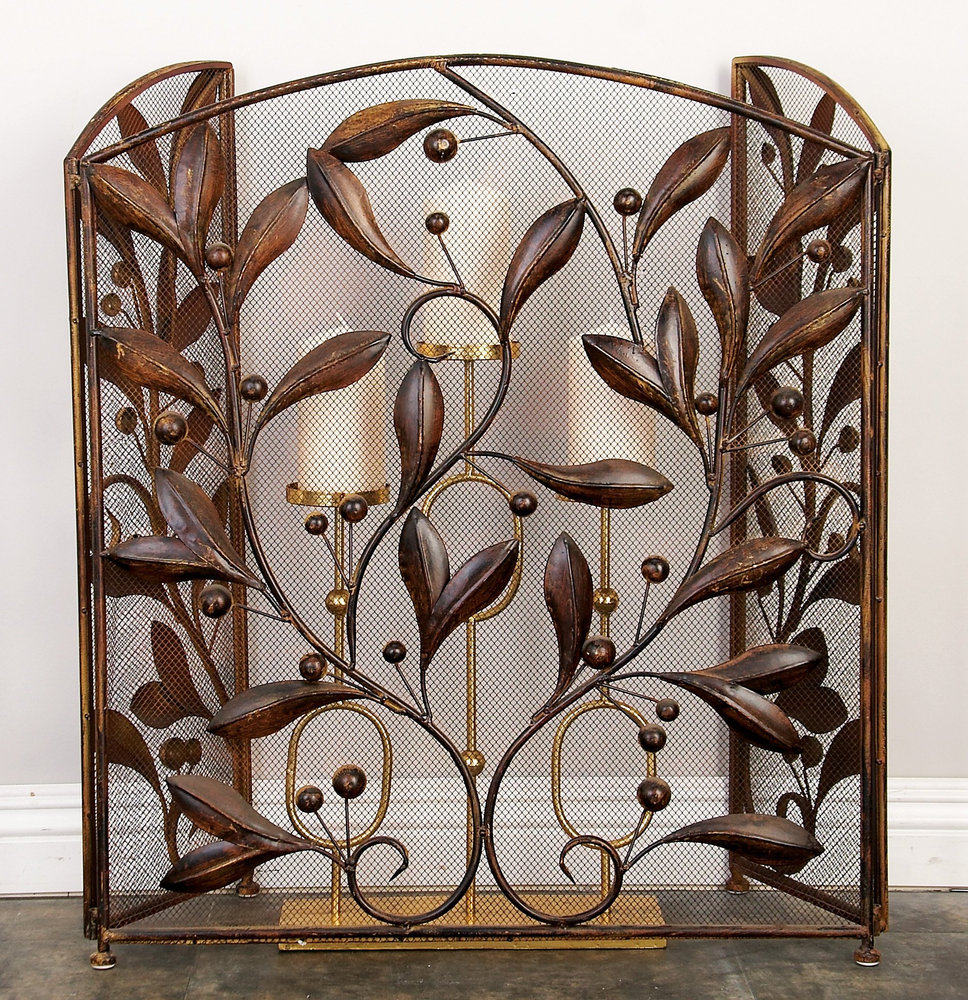 3 Panel Ornate Leaf Metal Fire Screen Fireplace