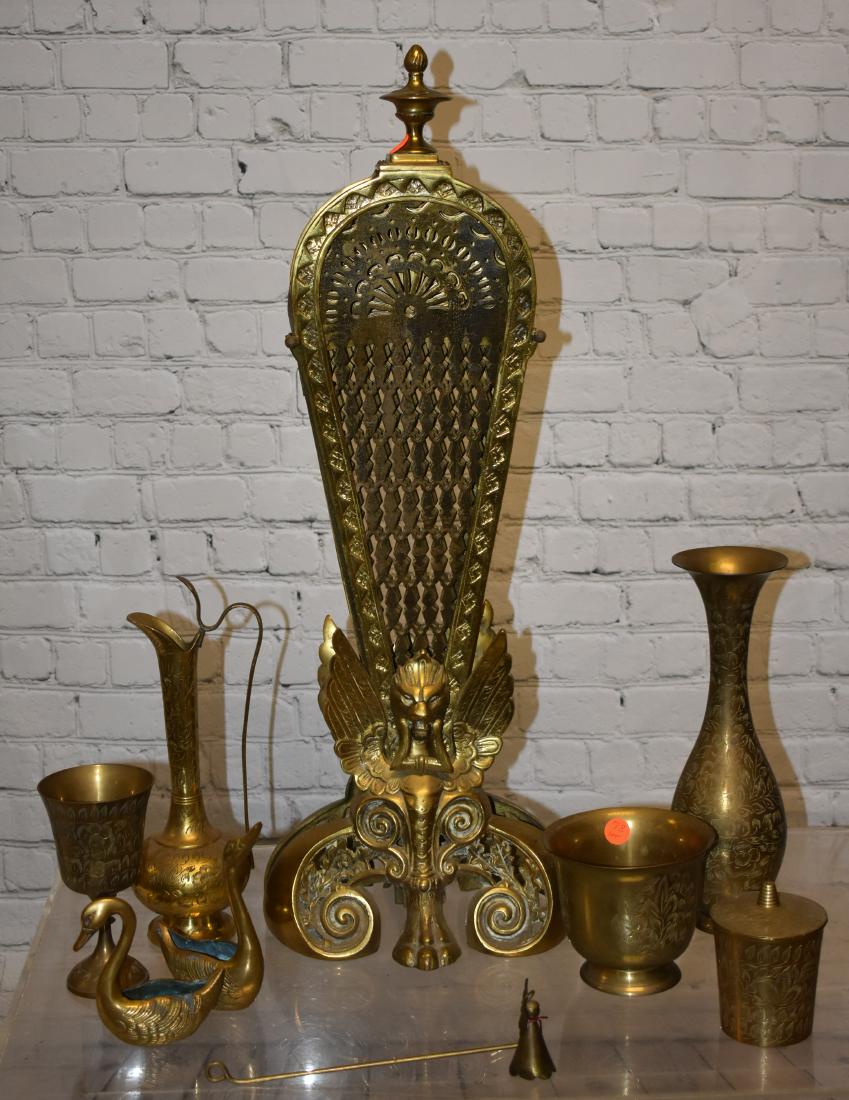761: Victorian Brass Fan Shaped Fireplace Screen : Lot 0761