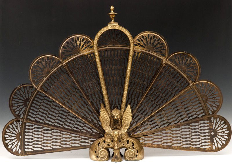 760: Victorian Brass Fan Shaped Fireplace Screen : Lot 0760