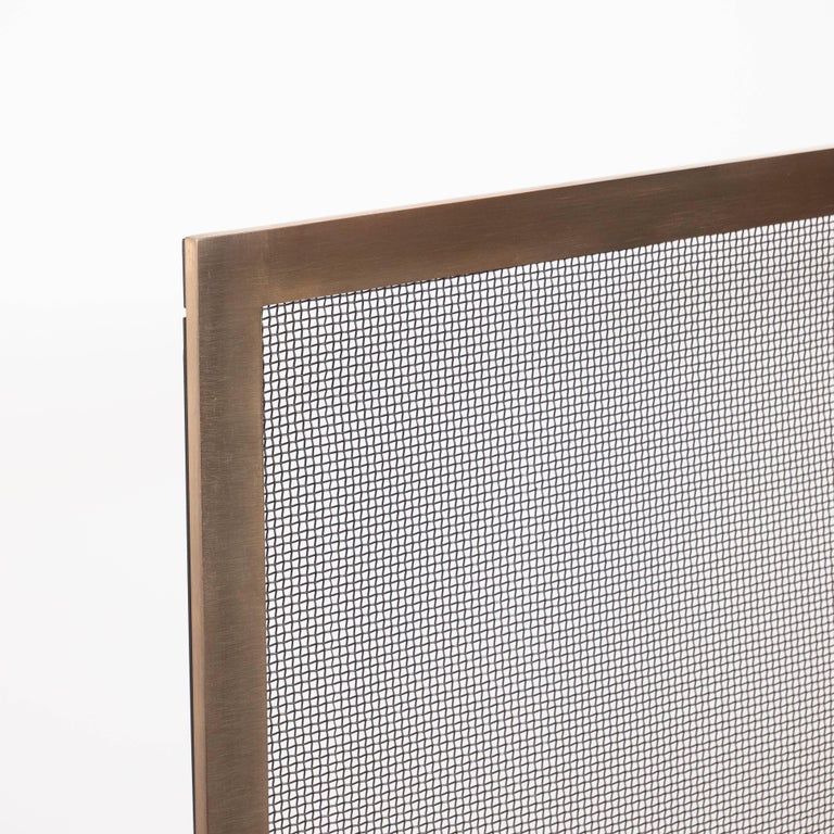 Modernist Custom-Made Fire Screen in Brushed Brass with Iron Mesh Grill For Sale at 1stdibs