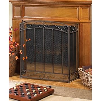 Amazon.com: Rustic Fireplace Screens Spark Guard Three Panel Decorative Iron Mesh Flat Antique