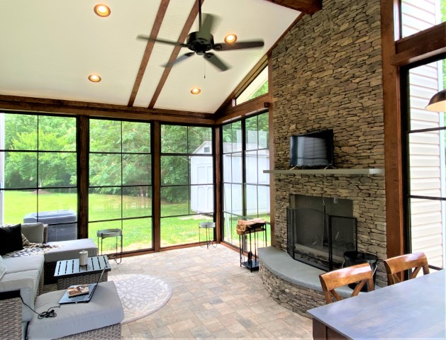 Raleigh fireplace Raleigh Screen Porch & 3 Season Room Builder – Pro Built Construction