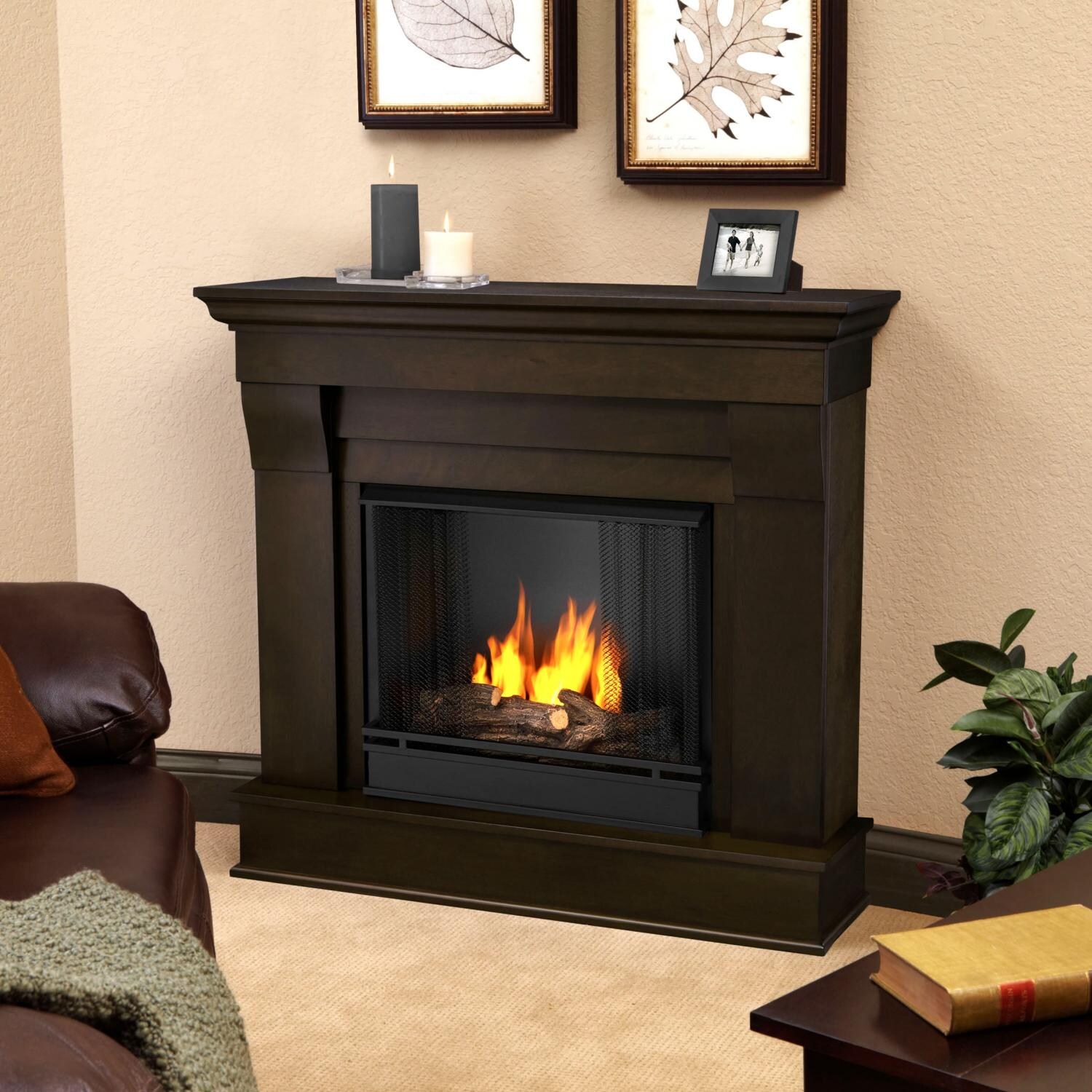 Real Flame Chateau 40-Inch Gel Fireplace With Mantel – Dark Walnut – 5910-DW : BBQGuys