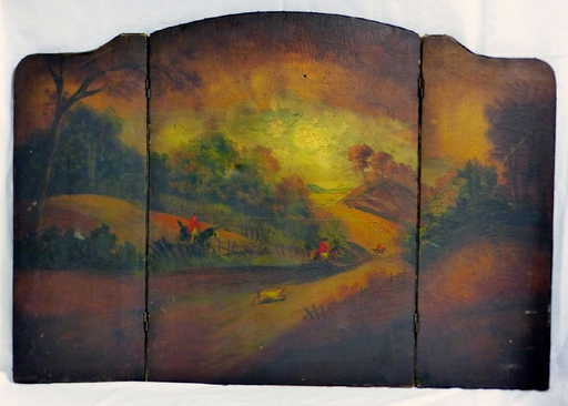 ANTIQUE HAND PAINTED 3-PANEL FIREPLACE SCREEN