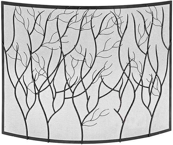 Fireplace Screen Retro Design Metal Fireplace Screen with Forest Decoration Curve Metal