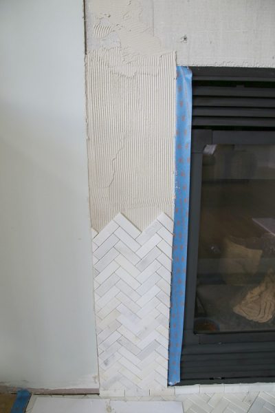How to Install a Marble Herringbone Fireplace Surround and Hearth Fireplace Makeovers