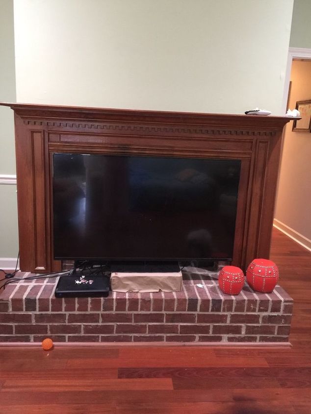 What are best options to refinish brick fireplace with wood surround? Hometalk