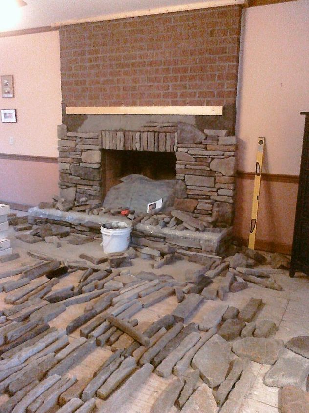 Manufactured Stone Veneer that I installed in dry-stack over a drab brick fireplace Hometalk