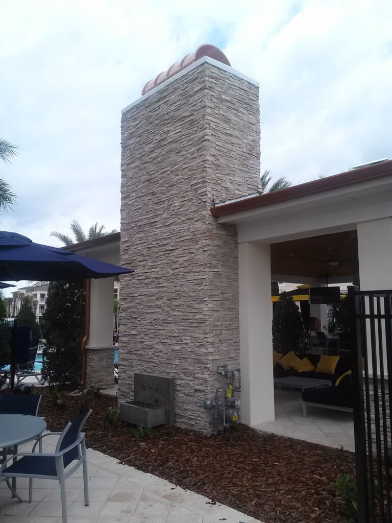 Exterior stone fireplace – Architectural Foam and Precast Concrete