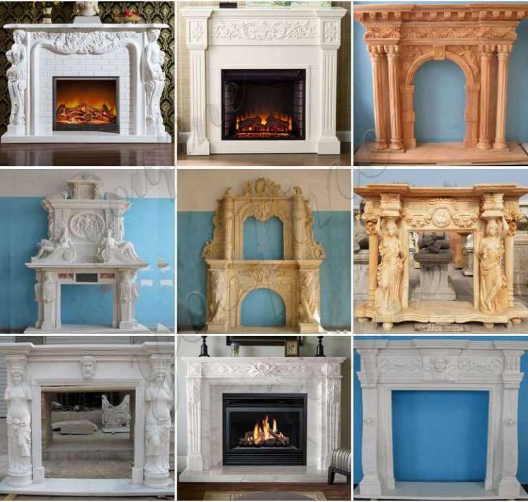 marble fireplace mantel carved stone surround concise living room decor-in Fireplace Parts from