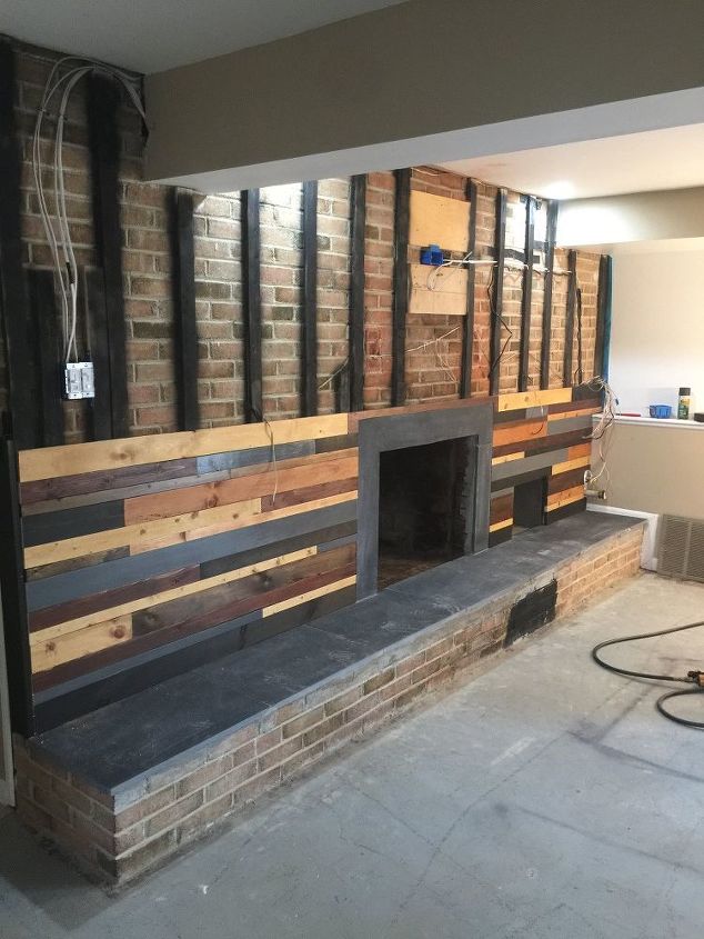 How to Build a DIY Brick Fireplace Hearth with a Shiplap Accent Wall & Rustic Wood Beam Mantle