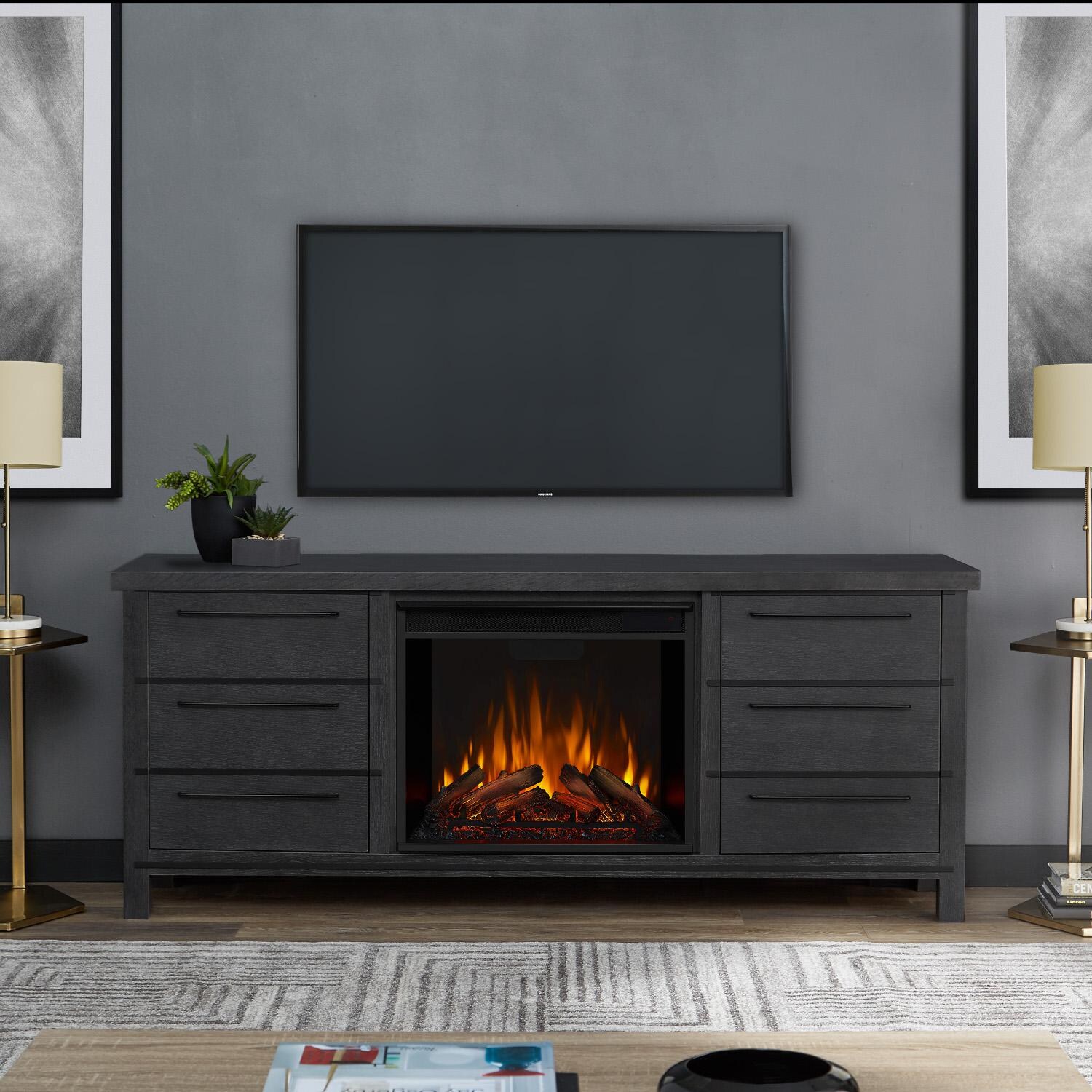 Real Flame 8280E-AGR Parsons 67-Inch Electric Fireplace Entertainment Center – Antique Gray