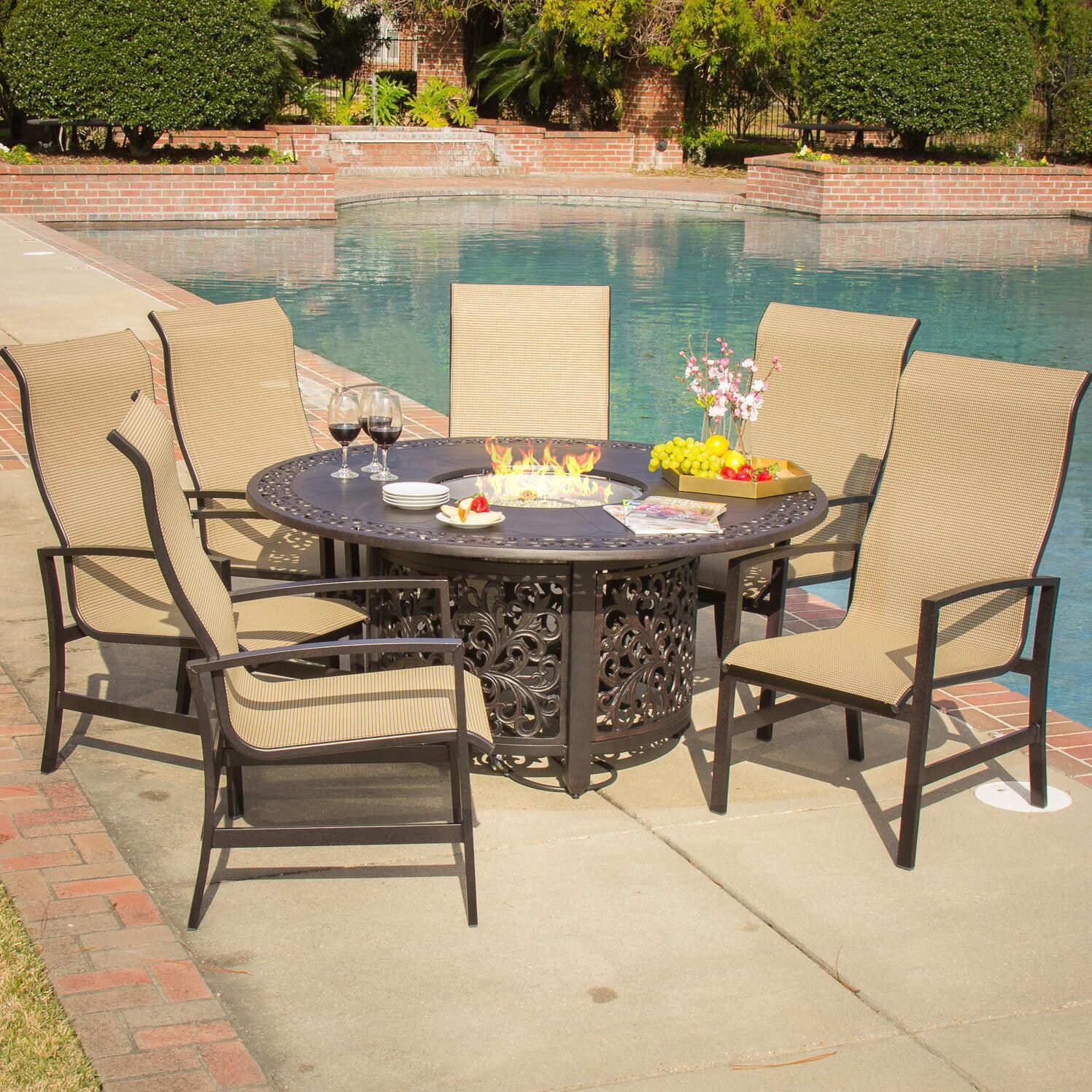 Acadia 7 Piece Sling Patio Fire Pit Dining Set By Lakeview Outdoor Designs : BBQGuys