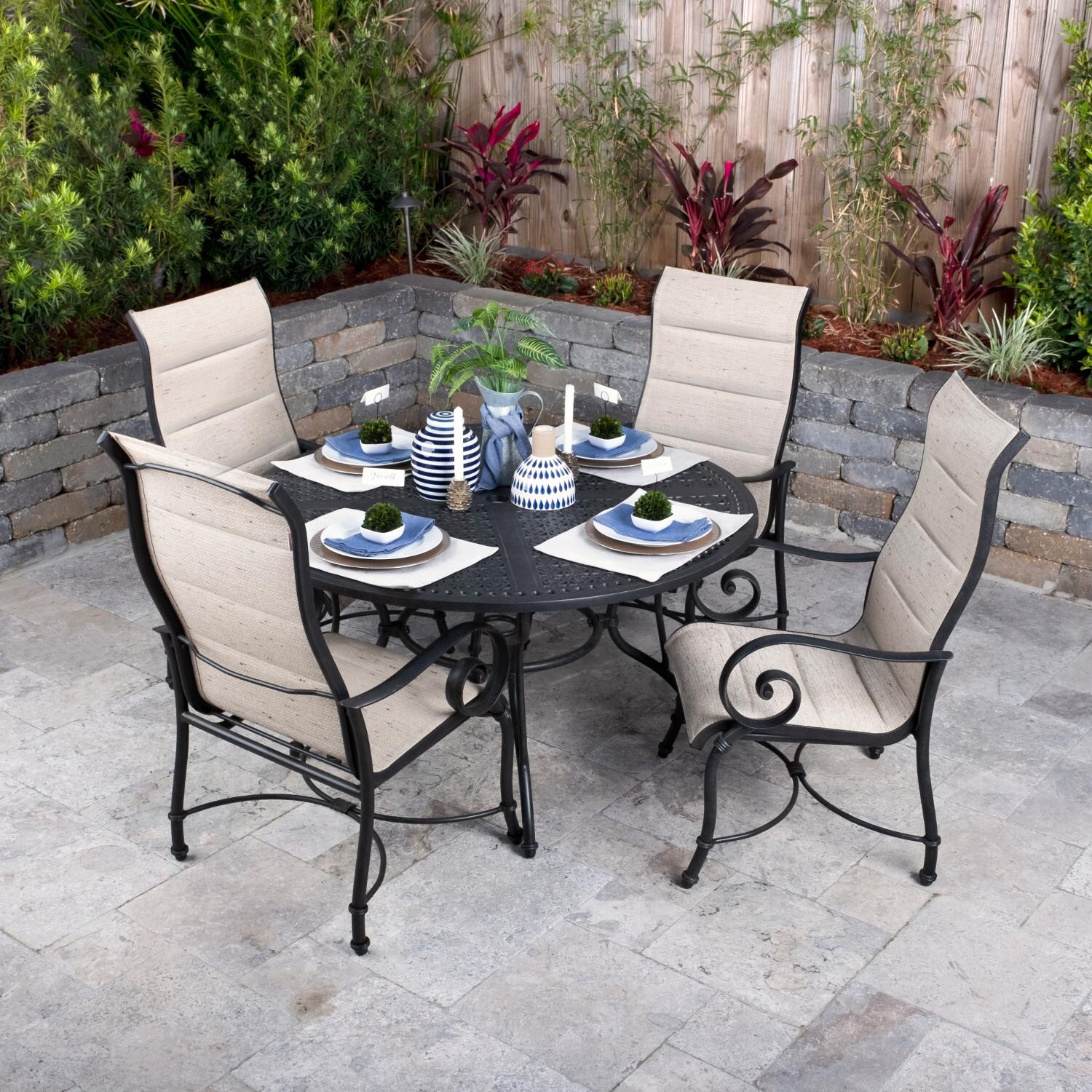 Elysian 5 Piece Padded Sunbrella Sling Patio Dining Set W/ 52 Inch Round Table By Lakeview