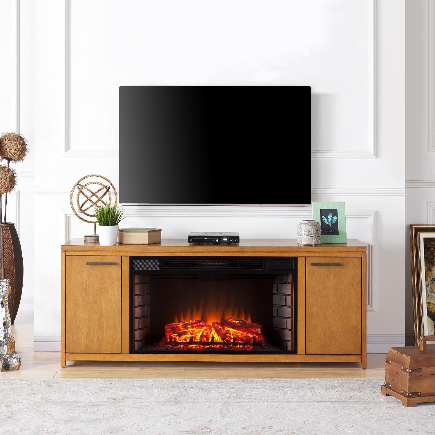 Electric Fireplace Media Center White Oak TV Stand Wood Entertainment Console eBay