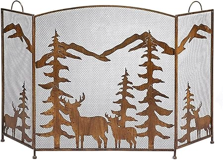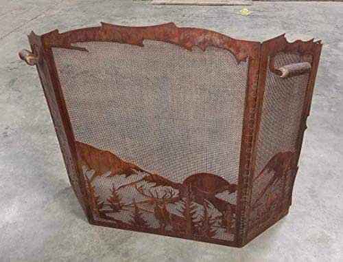 Amazon.com: Elk and Mountain Scene Fireplace Screen with Pine Tree Accents: Handmade