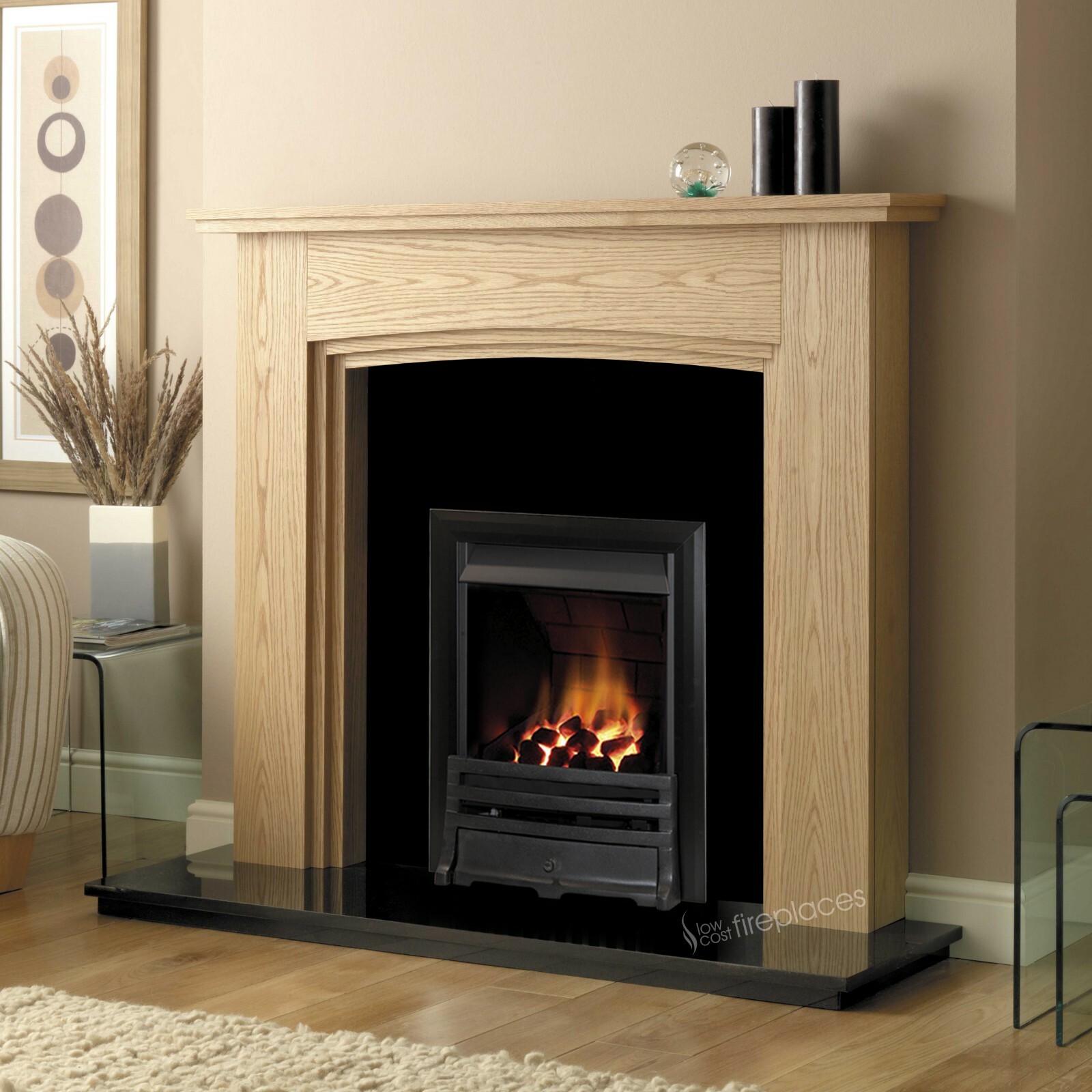 GAS OAK SURROUND WALL GRANITE STONE MODERN BLACK FIRE FIREPLACE SUITE LARGE 54" eBay