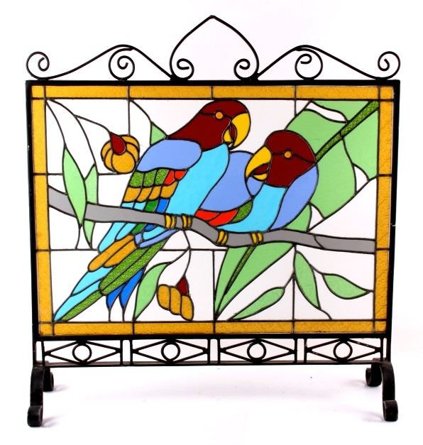 Art Nouveau Stained Glass Parrot Fireplace Screen