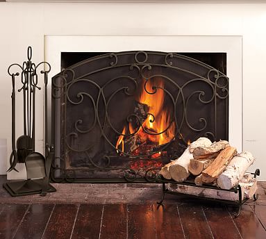 Industrial 44" Fireplace Screen with Doors Pottery Barn