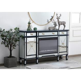 Elegant Decor Contempo 60 in. mirrored credenza with crystal fireplace in blue