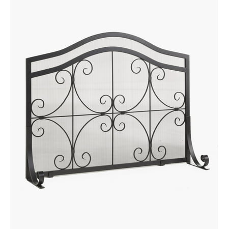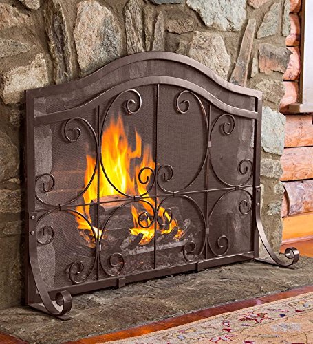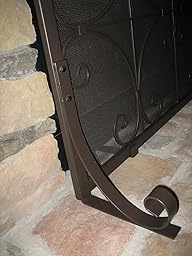 Amazon.com: Large Crest Flat Guard Fireplace Screen, Solid Wrought Iron Frame with Metal Mesh