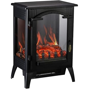 Amazon.com: HOMCOM Freestanding Electric Fireplace Heater with Realistic LED Log Flames and