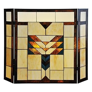 26″ H Mission Style Stained Glass Fireplace Screen: Home & Kitchen