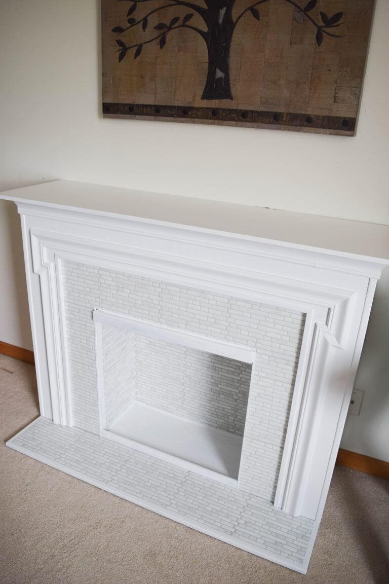 Fireplace surround makeover with peel and stick tile! DIYIdeaCenter.com