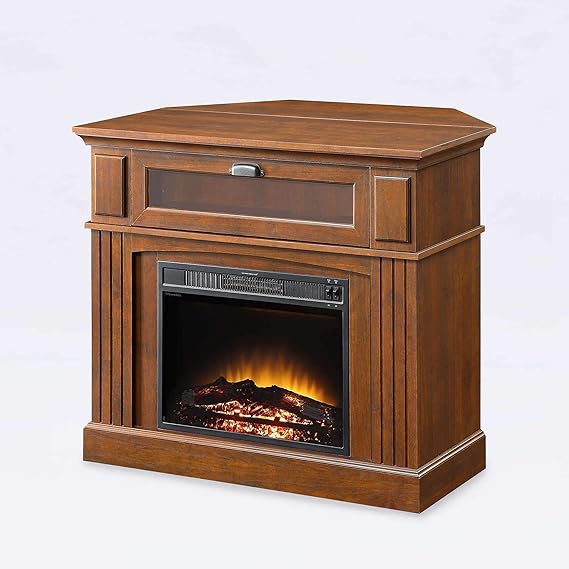 Corner Electric Fireplace TV Stand Holder Media Entertainment Heater Brown Fireplace Blower Fan