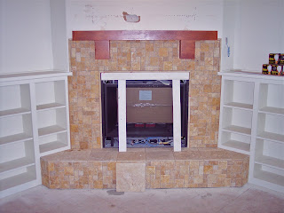 travertine tile fireplace surround Custom Fireplace mantle and Travertine tile fireplace