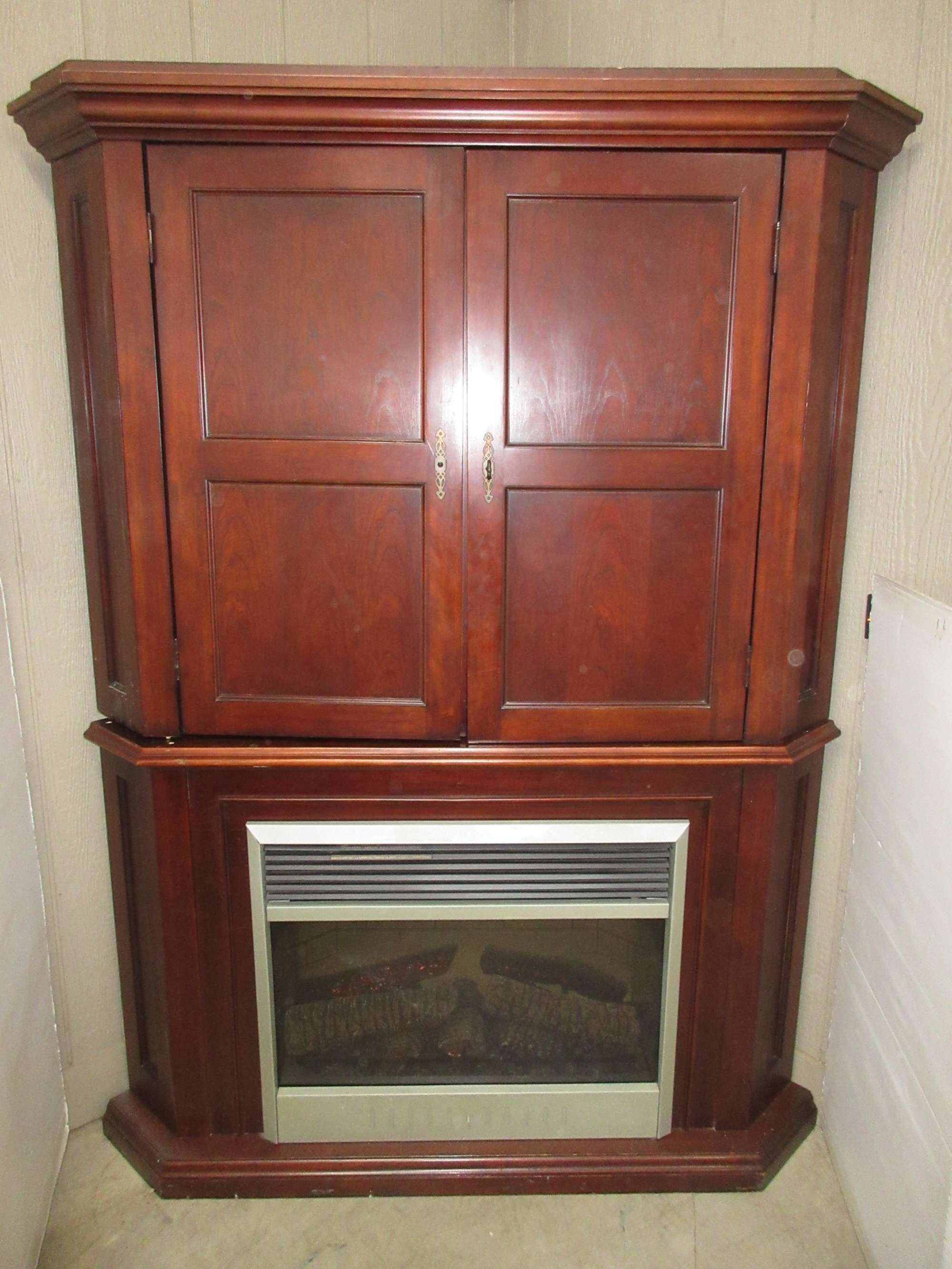 Albrecht Auctions Corner Electric Fireplace/TV Stand, Will Fit a 50" Flat Screen, Cherry Wood