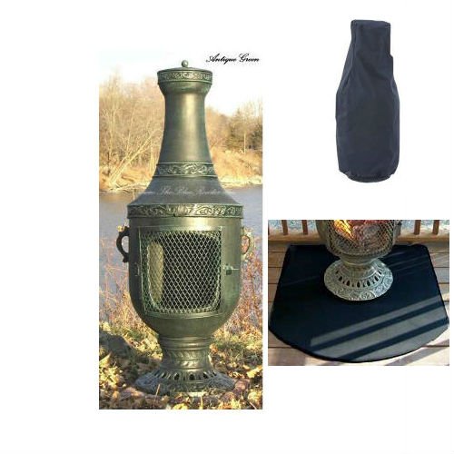 QBC Bundled Blue Rooster Venetian Wood Burning Chiminea ALCH026AG-TBRCC600L-TBRC900HR (52 inch H