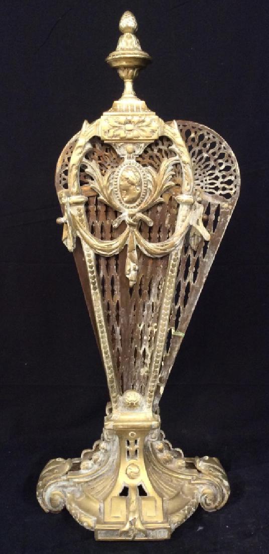 Gargoyle or Griffin Brass Peacock Fan Vintage Fireplace Screen #29527 Brass fireplace screen