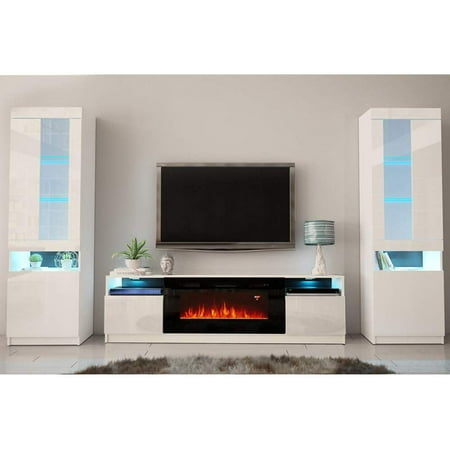 York 02 White Electric Fireplace Modern Wall Unit Entertainment Center by Meble Furniture