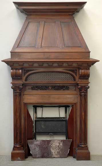 Large antique walnut wood mantel with copper insert, 19th c. 1stdibs.com Wood fireplace