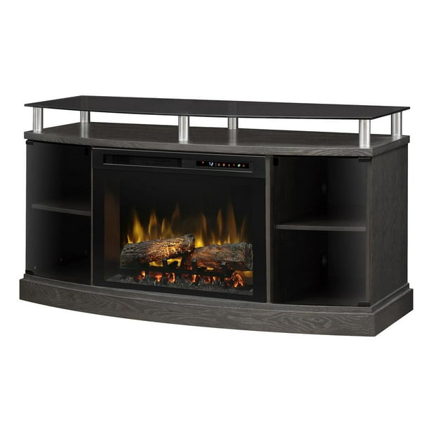 Dimplex Windham Media Console Electric Fireplace With Logs for TVs up to 55", Silver & Charcoal